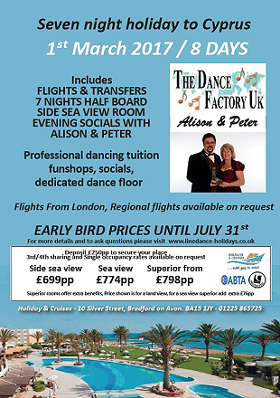 Why not consider joining on one of these fantastic holidays with your favourite pastime included, lots and lots of dancing! Please note there are limited reservations taken for this event so please book early to avoid disappointment. Holidays & Cruises For You handle all bookings for these holidays and payments and booking forms are returned to them directly.